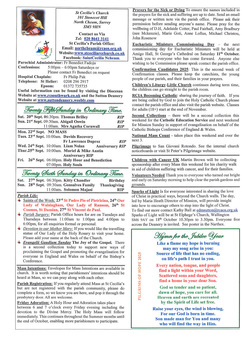 004a - 25th Sunday 2025 Newsletter