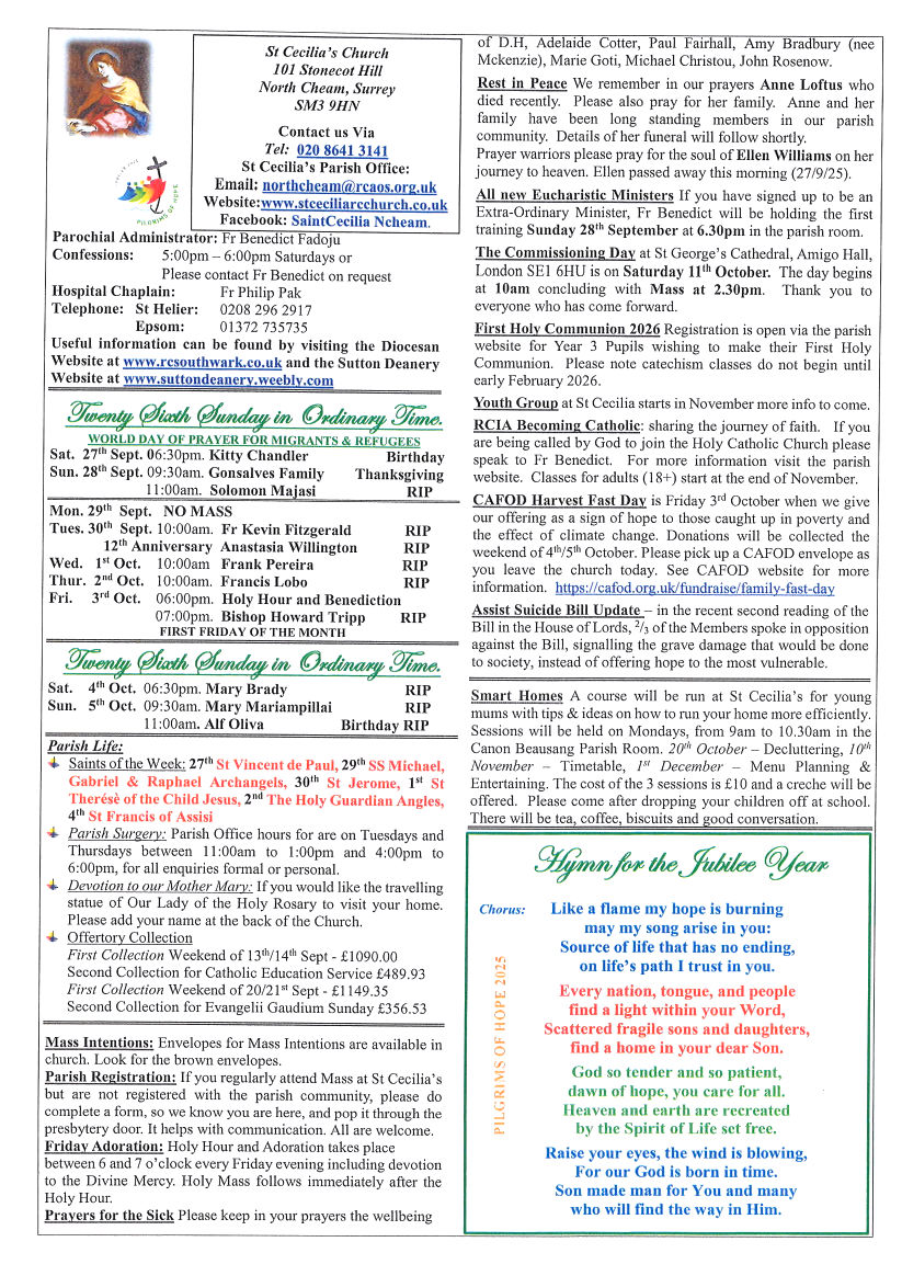005a - 26th Sunday 2025 Newsletter